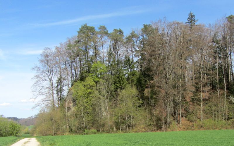 südlich von Thorberg und Krauchthal (Kanton Bern)Das Felsportal liegt ungefähr in der Mitte des Bilds.
