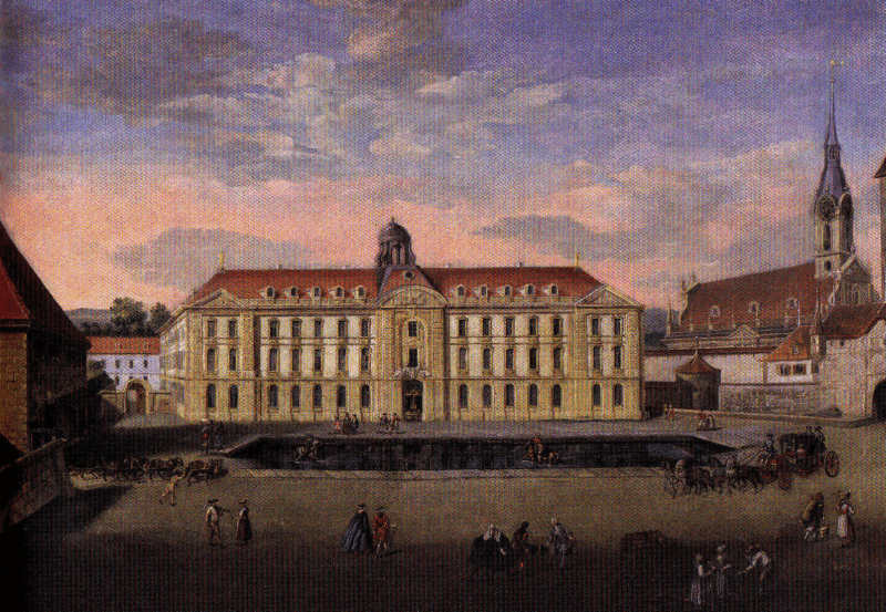 Auf Seite 16 wird ferner eine Aquatinta von Samuel Weibel wiedergegeben, die bereits die neue Heiliggeistkirche darstellt. - Doch stimmt das Datum 1795?