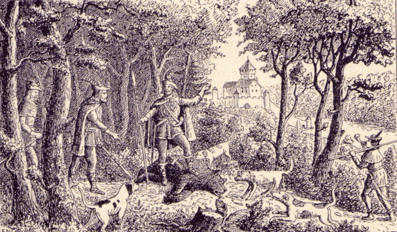 Herzog Berchtold V. von Zähringen bei der Bärenjagd vor dem Schloss Nydegg