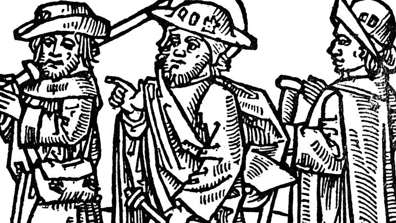 Pilger (Pilgrim) in einem alten Holzschnitt