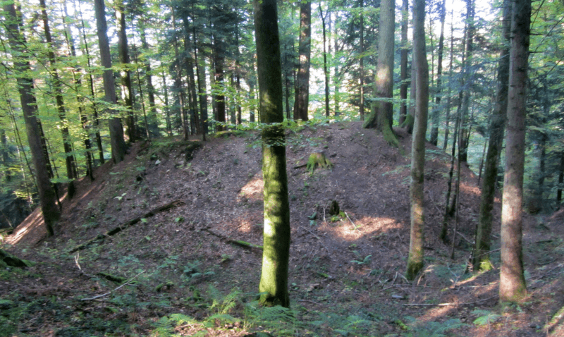 Dank der Bewaldung hat sich der Burghügel Kammenegg gut erhalten und gestattet ein paar interessante Einblicke.