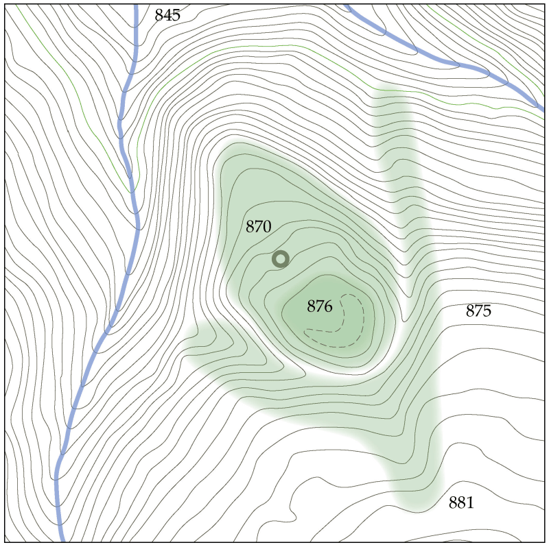 Das Gelände im Süden des Grabens und um die erwähnte Rinne herum ist teilweise verschliffen. Genaue Befunde sind nicht mehr möglich.
