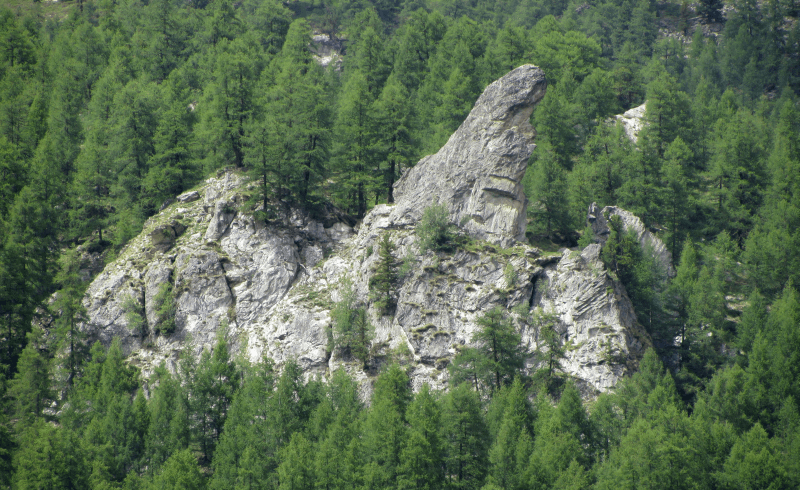 Von der Talseite her stellt der Felsen den Kopf und die Flügel eines Adlers dar.