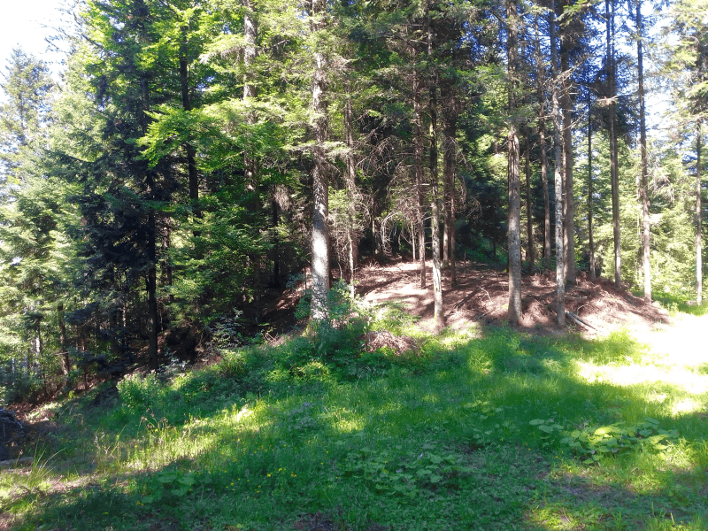 Gestört wird die Topographie einzig durch einen Forstweg, der von Süden hinabkommt und sich vor der Geländezunge der Anlage verzweigt. Ein Weg führt dabei nach Westen hinab, der andere umgeht den Burghügel im Osten und endet vor dem nördlichen Geländeabsatz.