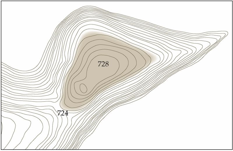 Schaut man sich den Plan des Burghügels an, so erkennt man unwillkürlich eine Figur. Sicher ist hier ein Vogelkopf dargestellt. Der gegen Nordosten gerichtete Schnabel ist überdeutlich. Da sich die Krete bis weit ins Tal hinunterzieht, könnte man sogar den Kopf eines Storchs oder eines Reihers sehen.
