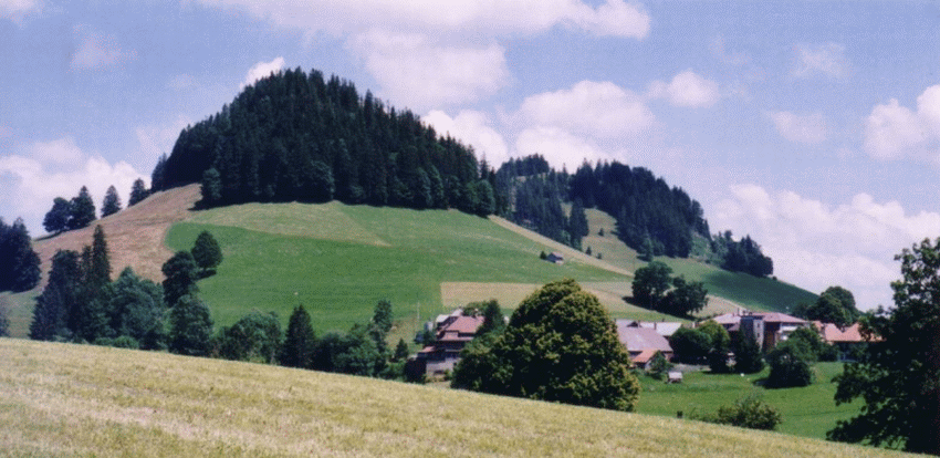 Erdburg auf 981 m Höhe oberhalb von Niedermuhlern BE