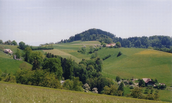 Tschuggen bei Oberbalm BE ist eine typische Höhenburg - auf fast 1000 m über Meer gelegen. Das künstlich erhöhte Plateau war gegen SW und vor allem gegen E durch einen Graben geschützt.