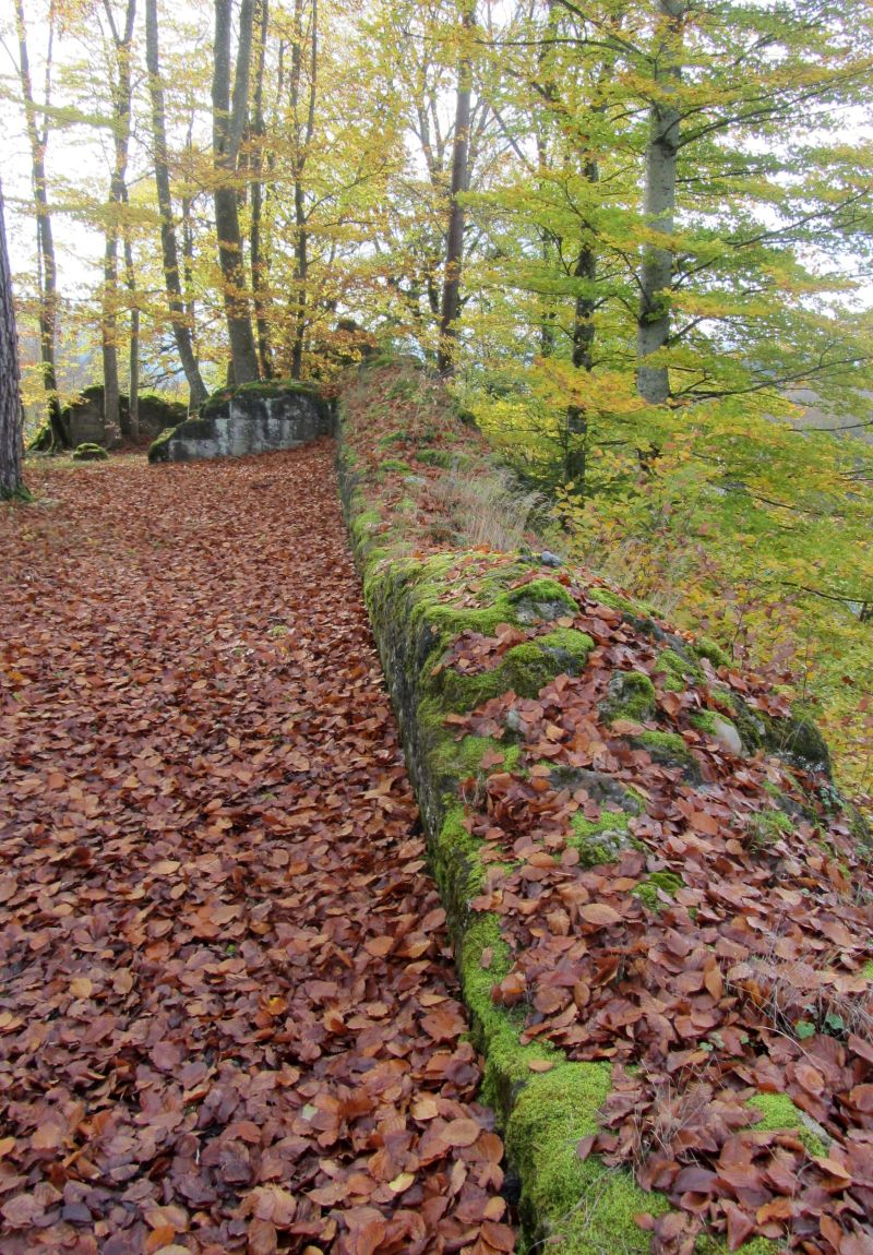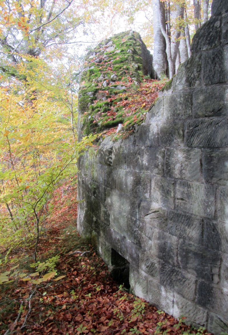 Des Burgenforschers Freude an der Burgruine ist beeinträchtigt. Denn die Struktur der Außenmauer mit ihrer fantastisch guten Erhaltung und ihrer unnatürlich regelmäßigen Behauung entspricht nicht dem ursprünglichen Zustand.