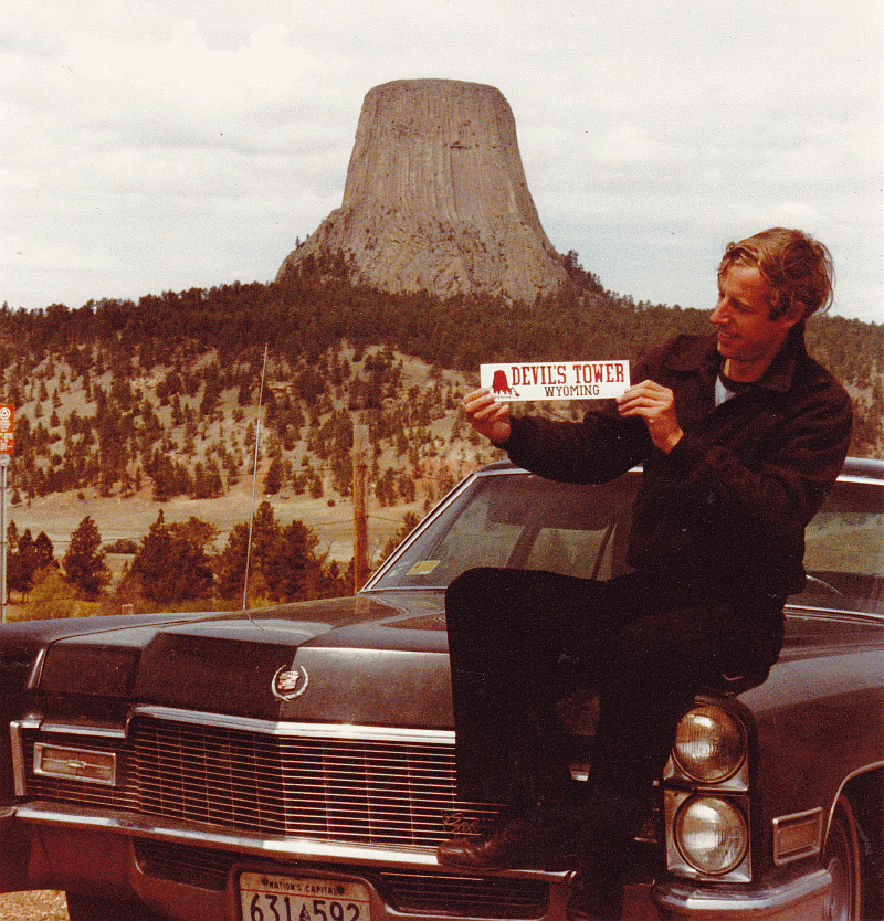 Vor dem Devil's Tower in Wyoming, USA, anfangs Mai 1980