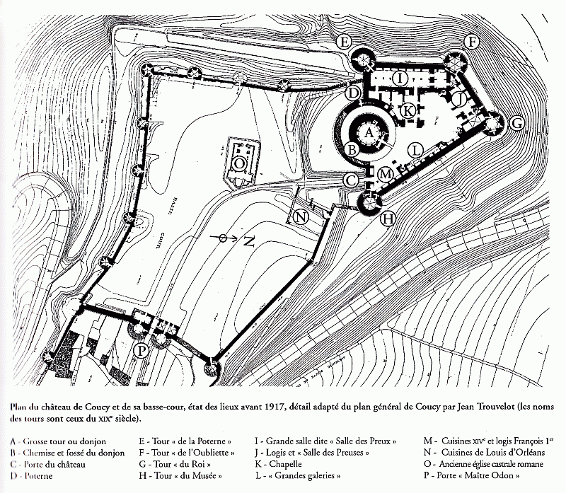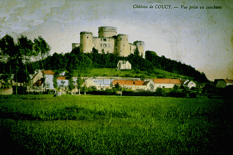 Néanmoins la grosse tour de Coucy a tenu debout jusqu'en 1917 quand les Allemands l'ont fait sauter dans un accès de sauvagerie.