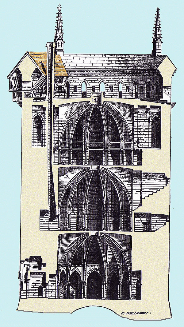 L'ouvrage de la grosse tour de Coucy était hélas soumis au vieillissement : Selon les images il y avait déjà au début du 19ème siècle une grande lézarde dans le mur extérieur. - Et les pinacles étaient déjà tombés.