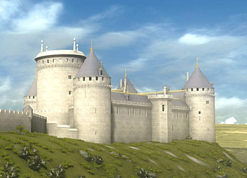 Coucy : reconstitution du château principal avec le donjon en 3D