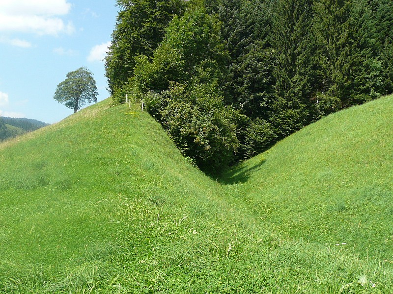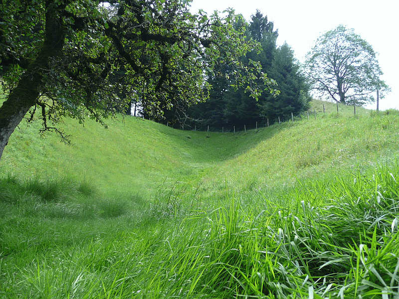 Das Erdwerk ist klar gegen Westen ausgerichtet. Die Terrassenanlage muss von der Seite von Bowil her einen monumentalen Eindruck gemacht haben.