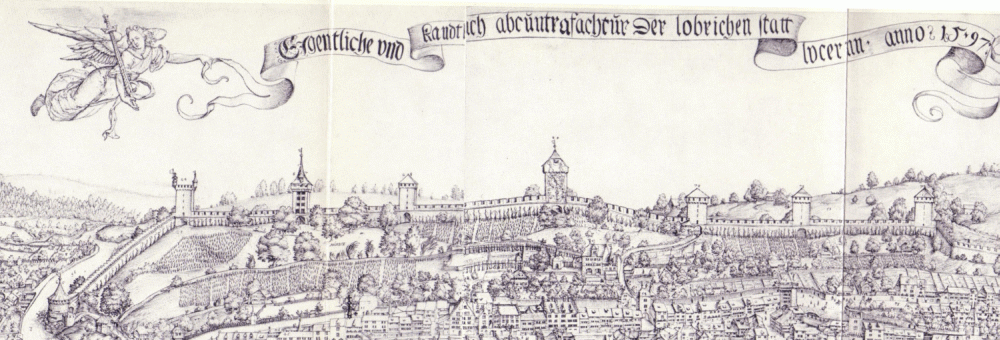 Die Musegg-Mauer (Ausschnitt) in der Stadtansicht von Martinus Martini