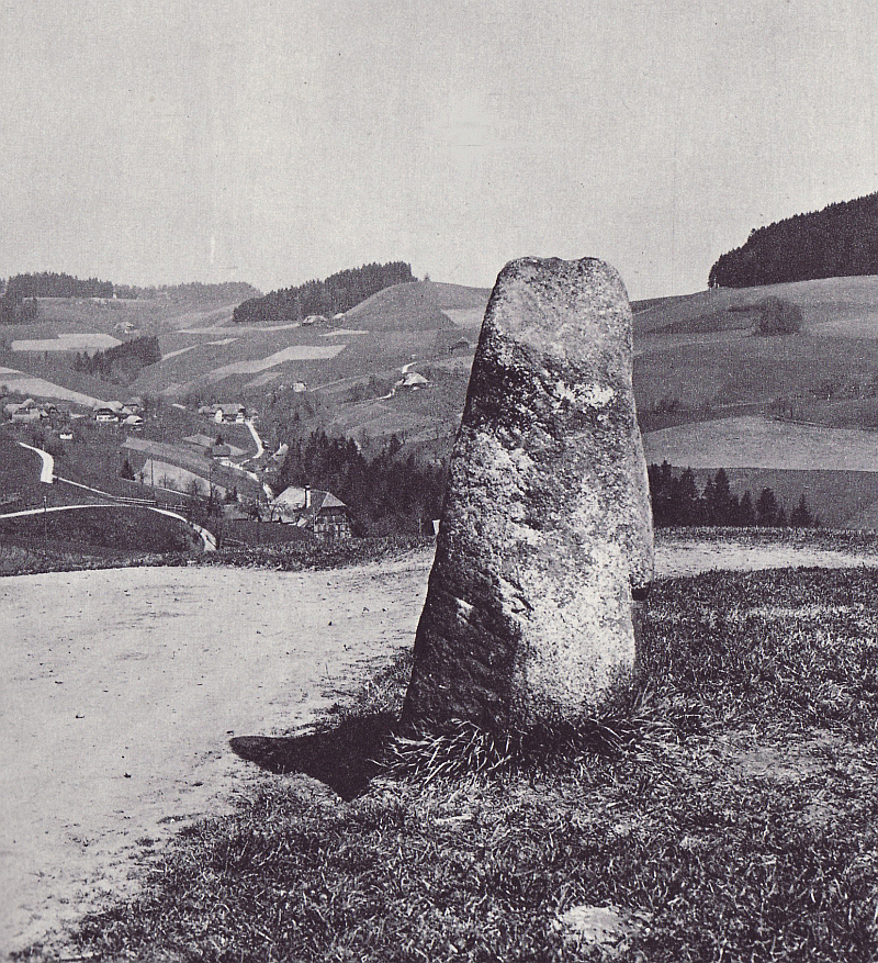 Die 1,8 m hohe Granitsäule ist zweifellos behauen, das zeigt schon die eckige Grundform und die Zuspitzung nach oben auf zwei Seiten. Einige Löcher beweisen, daß der Stein früher als Befestigung für ein Gatter gedient hat.