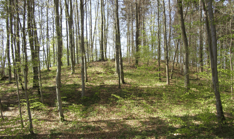 Spuren des Ringgrabens am Südwestfuss des Tumulus.