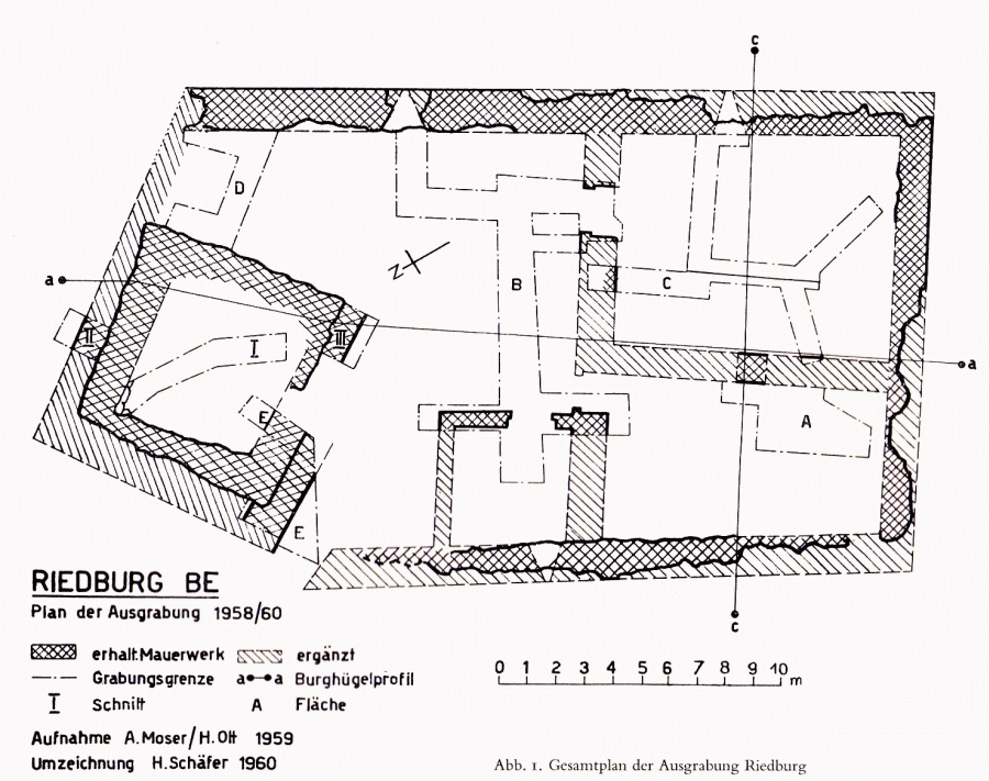 aus: Hans Ott: Ausgrabungen auf der Ruine Riedburg. In: Jahrbuch des Bernischen Historischen Museums, XXXXIX. und XL. Jahrgang, 1959 und 1960, Seite 116