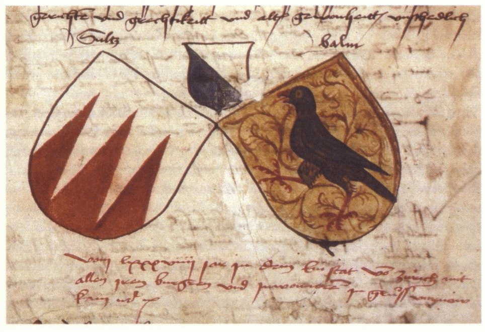 Deshalb erscheinen auf dieser Illustration die beiden einander zugeneigten Wappen von Sulz und Balm.