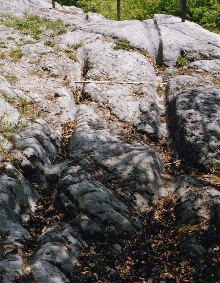Zum ersten ist sicher, daß diese Karrgeleise künstlich angelegt wurden - also nicht durch häufige Benützung natürlich eingetieft wurden.