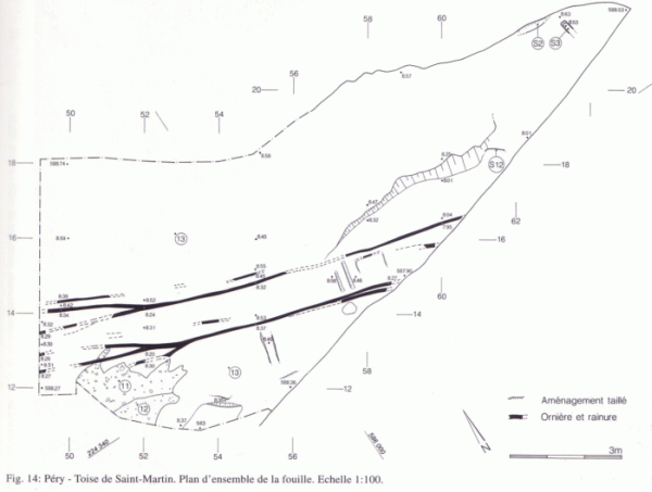 Sondierungen 1994 führten zu einer genauen Vermessung der Römerstrasse und der Nische. - Und eine bereits 1918 in der Nähe gefundene Inschrift erlaubte es, den Ursprung der des Martinsklafters auf die gallorömische Zeit zurückzuführen. Ein 50 cm langer Block trägt die Inschrift: