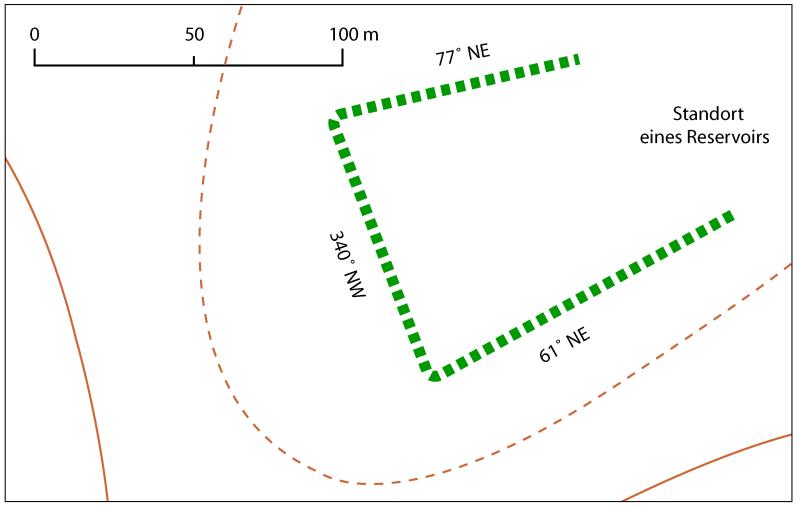 Die vierte Seite, gegen , ist bei der Anlage eines Wasserreservoirs zerstört worden.